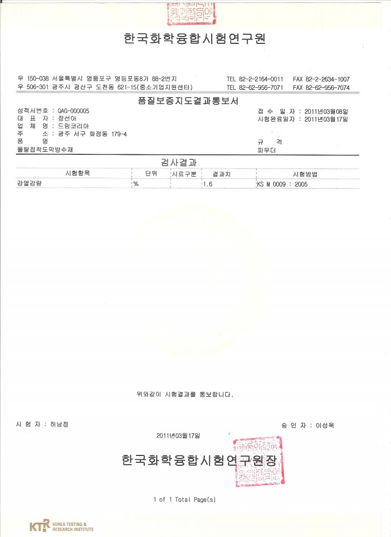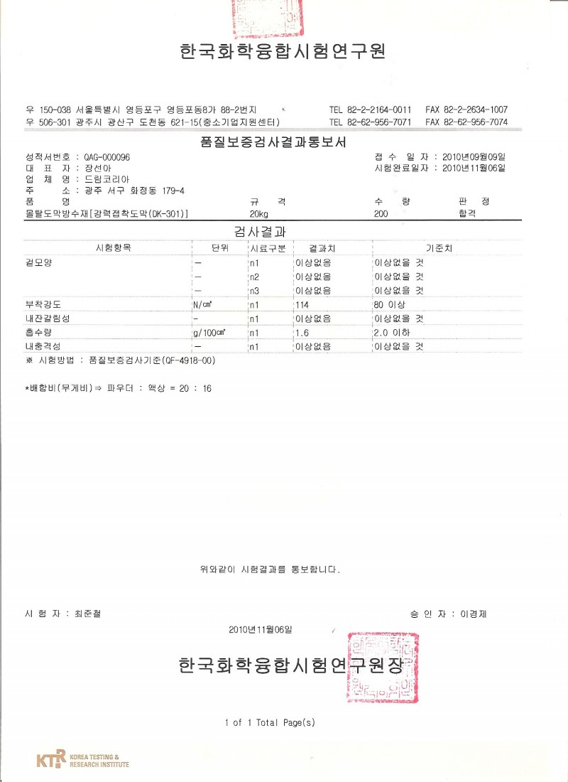 DK-301 드림탄2 시험성적서